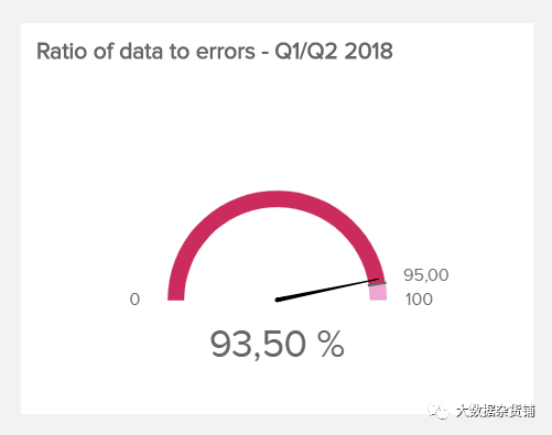 衡量准确性的典型指标是数据与错误的比率,它跟踪相对于数据集的已知错误(例如丢失、不完整或冗余条目)的数量。当然,这个比率应该随着时间的推移而增加,证明数据的质量会变得更好。没有具体的数据与错误比率,因为它很大程度上取决于数据集的大小和性质 - 但当然越高越好。在下面的示例中,我们看到数据错误率略低于 95% 准确率的目标: