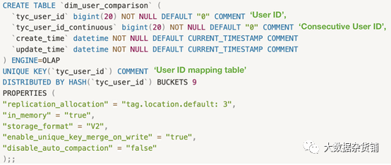 我们对用户ID 映射表采用 Unique 模型,其中用户ID是唯一键。映射的连续 ID 通常从1开始并且严格递增。