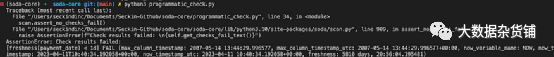 Soda Python 库支持编程检查,我们不需要一直使用 CLI。下面我创建了一个 Python 脚本来读取配置并检查文件并执行它们。为了得到错误,我将使用 freshness.yml 文件。