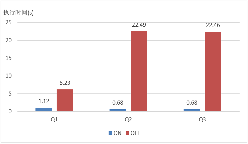 针对上文所述的查询示例Q1、Q2、Q3。图4展示了开启与关闭Limit Offset下推功能的性能对比: