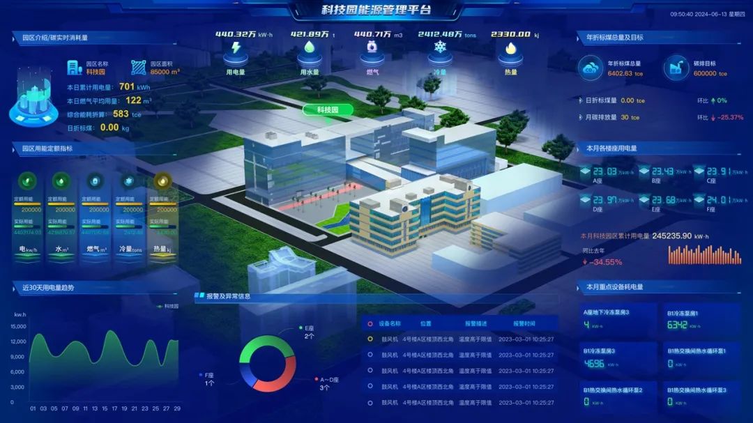 随着城市化进程的加快,智慧园区的建设已成为城市发展的重要一环,在能源管理方面也有更高要求。传统园区普遍面临用能单位繁杂、能源数据分散、供能保障不足、能源消耗高、监管困难等问题,难以满足现代园区能源高效利用、绿色环保的要求。