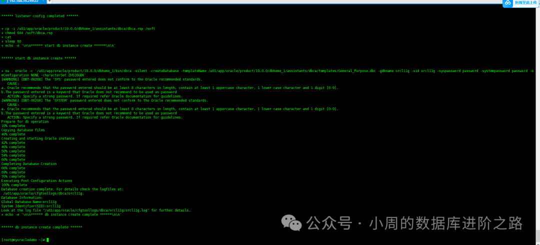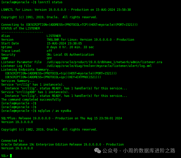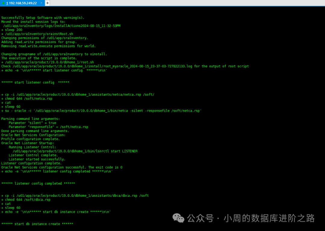 su - oracle -c "/u01/app/oracle/product/19.0.0/dbhome_1/bin/netca -silent -responsefile /soft/netca.rsp"