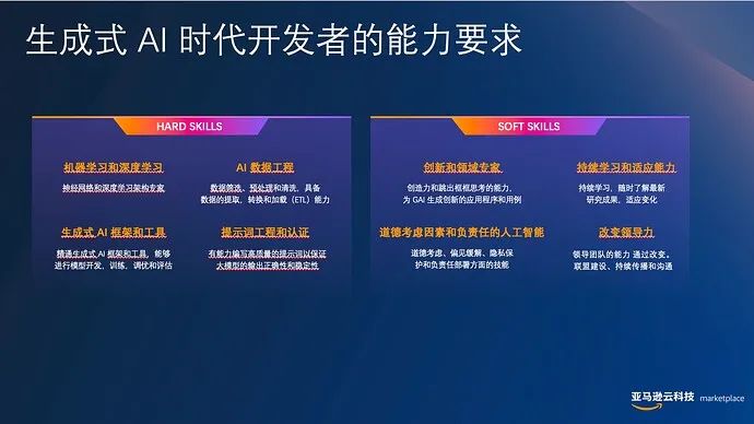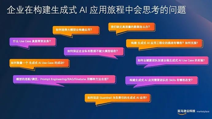 王启明老师在演讲中强调了生成式 AI 的变革潜力,介绍了 Amazon Bedrock 等工具,讨论了数据安全、隐私保护和开发者技能要求。他提倡负责任的 AI 构建,并介绍了亚马逊云科技 Marketplace 作为资源平台。