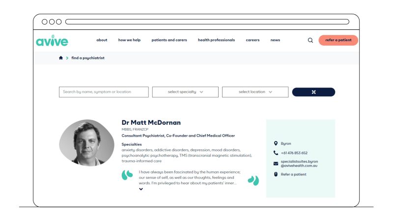 提供有关您的员工的详细信息,以便患者在就诊之前了解他们的医生。这会增加信任度并有助于消除对未知的恐惧。每个个人资料都应包括医生的姓名和个人资料图片、位置、服务范围、资格、办公时间和等候时间。个人资料中还可以包含评论,帮助其他人选择合适的护理提供者。