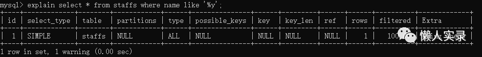 rows:大致估算出找出所需记录需要读取的行数,这边显示1执行效率比较高的
