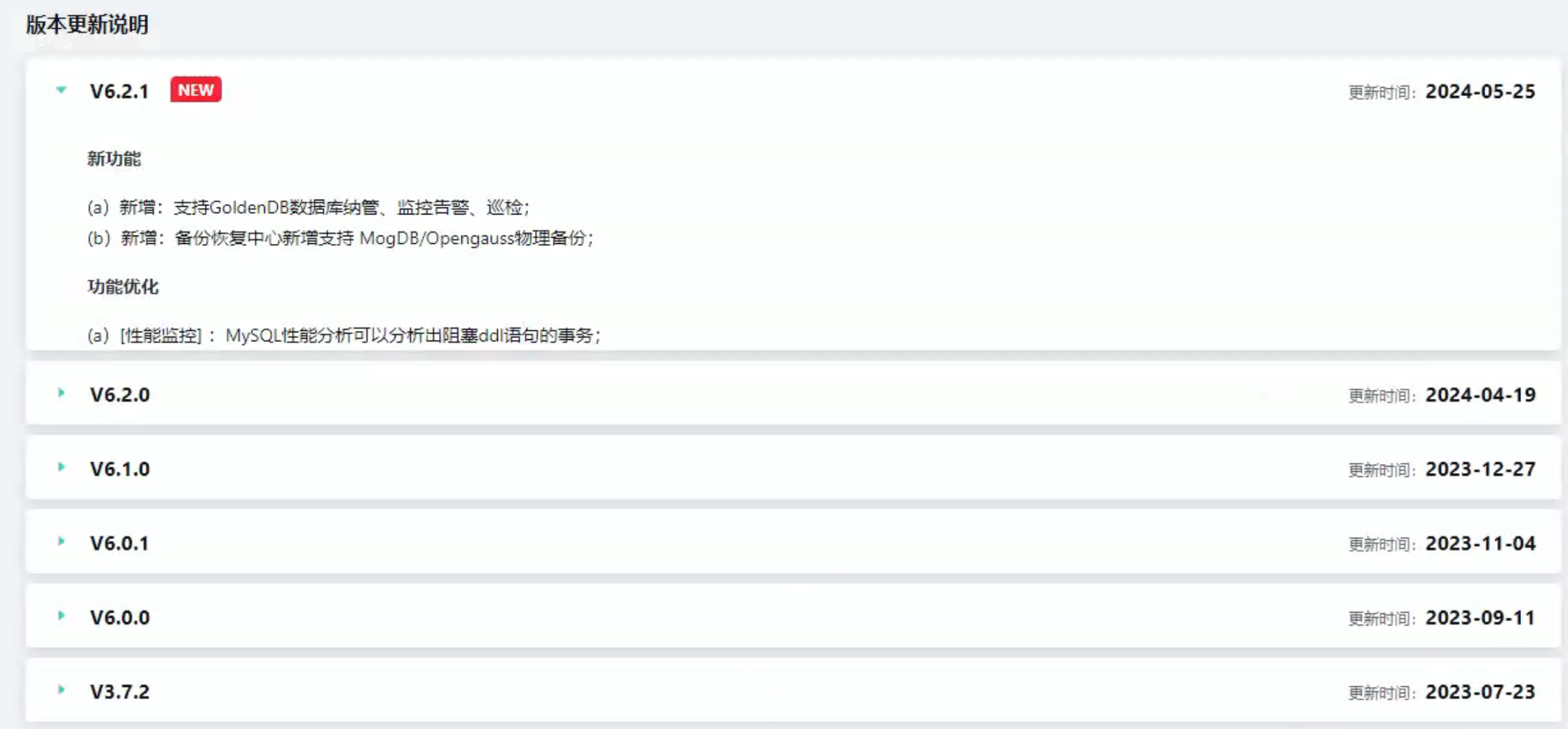 注意:升级过程为停机升级,不对已纳管的数据库本身产生影响,但数据库监控相关数据,会存在监控断点数据。