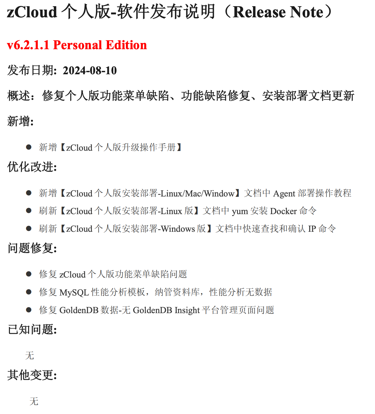 最新 zCloud 个人版下载链接:zCloud 开放运维创新坊