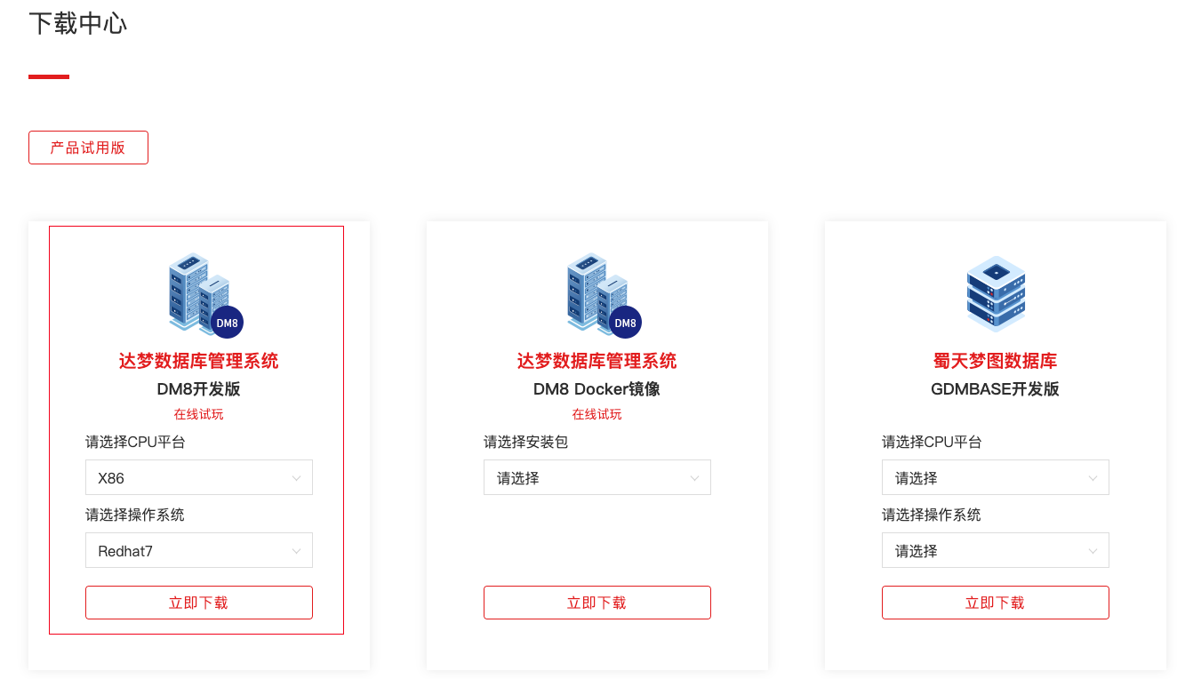 数据库软件安装包可以访问达梦官网的下载中心进行下载:下载中心
