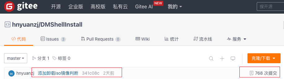 达梦一键安装脚本是托管于 Gitee 代码平台,可以看到作者更新十分活跃,累计提交 768 次,上次更新 2 天前 👍🏻: