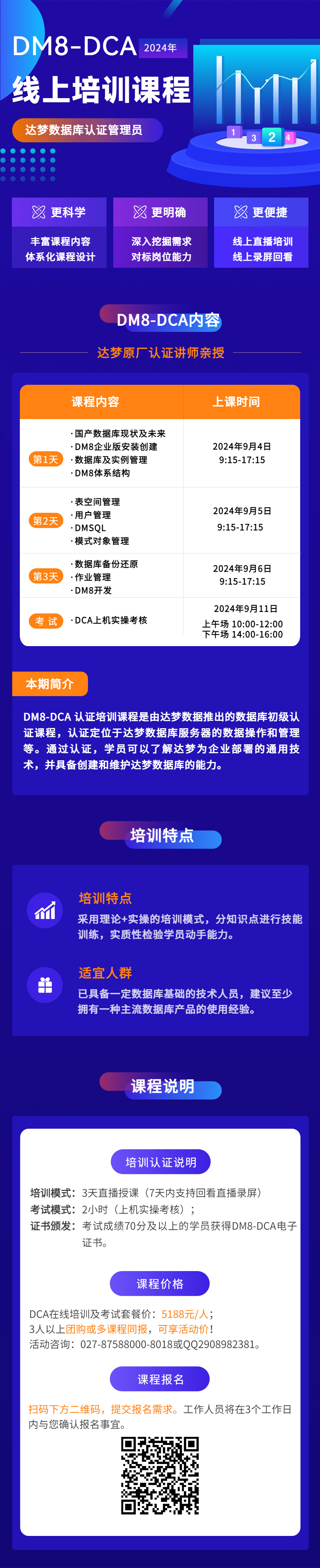 开班通知 | 第25期DM8-DCA线上培训班招生中(2024年09月04日开班),预报从速!