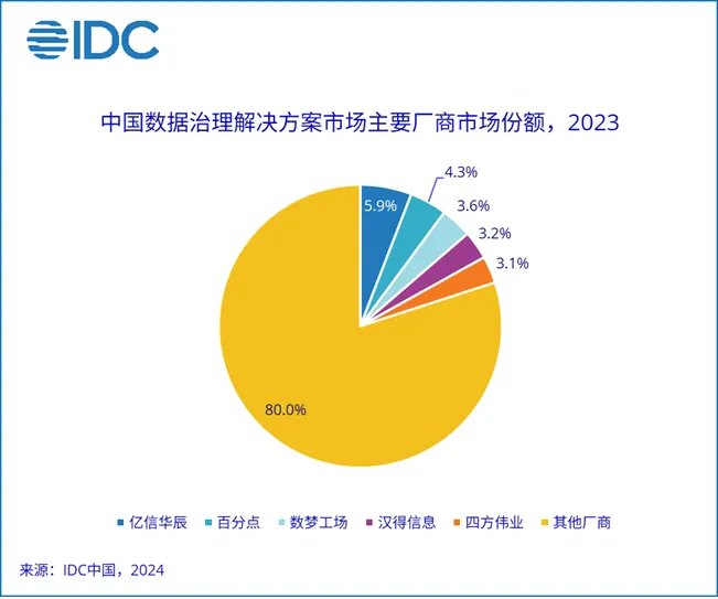 IDC数据显示,2023年中国数据治理平台级市场规模达29.3亿元人民币,相比2022年增长9.1%;数据治理解决方案市场规模2023年达30.8亿元人民币,相比2022年增长7.8%。受宏观经济影响,整体市场增速略有下滑。