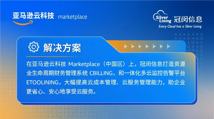 亚马逊云科技 Marketplace 是一个精心严选的数字化产品目录,让客户可轻松地查找、购买、部署和管理独立软件供应商提供的软件及服务,来满足客户构建解决方案和开展业务的需求。亚马逊云科技 Marketplace 包括成千上万种软件,这些软件属于众多热门类别,例如安全、网络、存储、机器学习、商业智能、数据库和开发运营。亚马逊云科技 Marketplace 还提供灵活的定价选项和多种部署方法,能够简化软件许可和采购过程。亚马逊云科技 Marketplace(中国区)是一个独立的在线商店,由宁夏西云数据科技有限公司(西云数据)运营。市场内容可以与亚马逊云科技中国(北京)区域和亚马逊云科技中国(宁夏)区域的产品和服务一起进行部署。