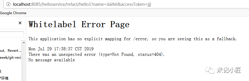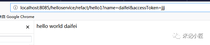 然后重启服务并访问:http://localhost:8085/helloservice/refact/hello1?name=daifei&accessToken=jjj