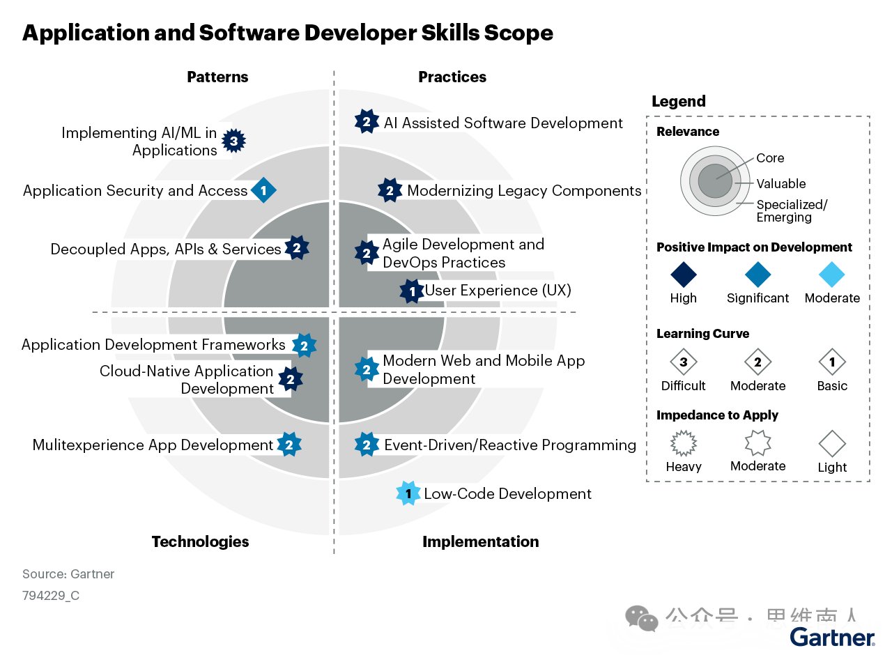 我当时看完,觉得文章逻辑就不对,因为支撑业务单元不一定要优秀技术,很多时候只需要补充业务单元的弱项和空白就行了;然后列出来的反例都是些表象,但这些表象放在不同组织内是否真的都是反例?不同组织架构有不同的资源储备,不同的风险偏好,很多所谓的反例可能是组织刻意为之,而不是错;最后,即使撇开所有的前提,光看业界发展方向,平台工程作为近两年如火如荼重点的新名词、新领域,已成为GARNTER 2024年十大顶级战略趋势之一。GARNTER也于今年6月中发布了平台工程的首个魔力象限(见图一),并推断到2026 年,80%的大型软件工程组织将建立平台工程团队,作为应用交付可重用服务、组件和工具的内部提供商,而基础架构部作为其中的一个重要建设者,反而应该消失???