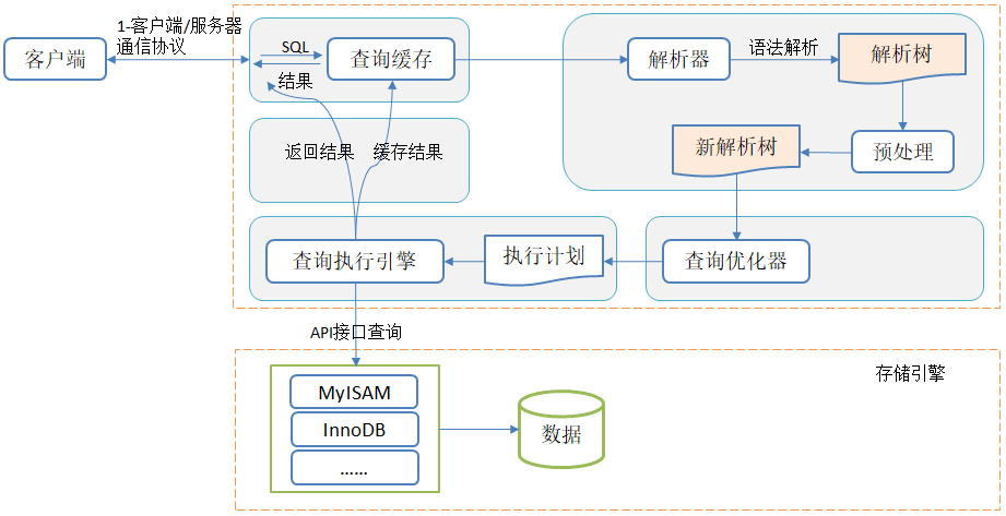 执行:MySQL根据执行计划,调用存储引擎的API来执行查询