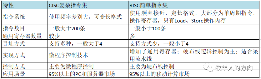 从硬件角度:CISC采用的是不定长的指令集,更加适用于特定专业领域的应用;RISC执行的是等长的精简指令集,在并行处理方面明显优于CISC。另外RISC执行的精简指令集在硬件层面实现工艺上更为简单廉价。