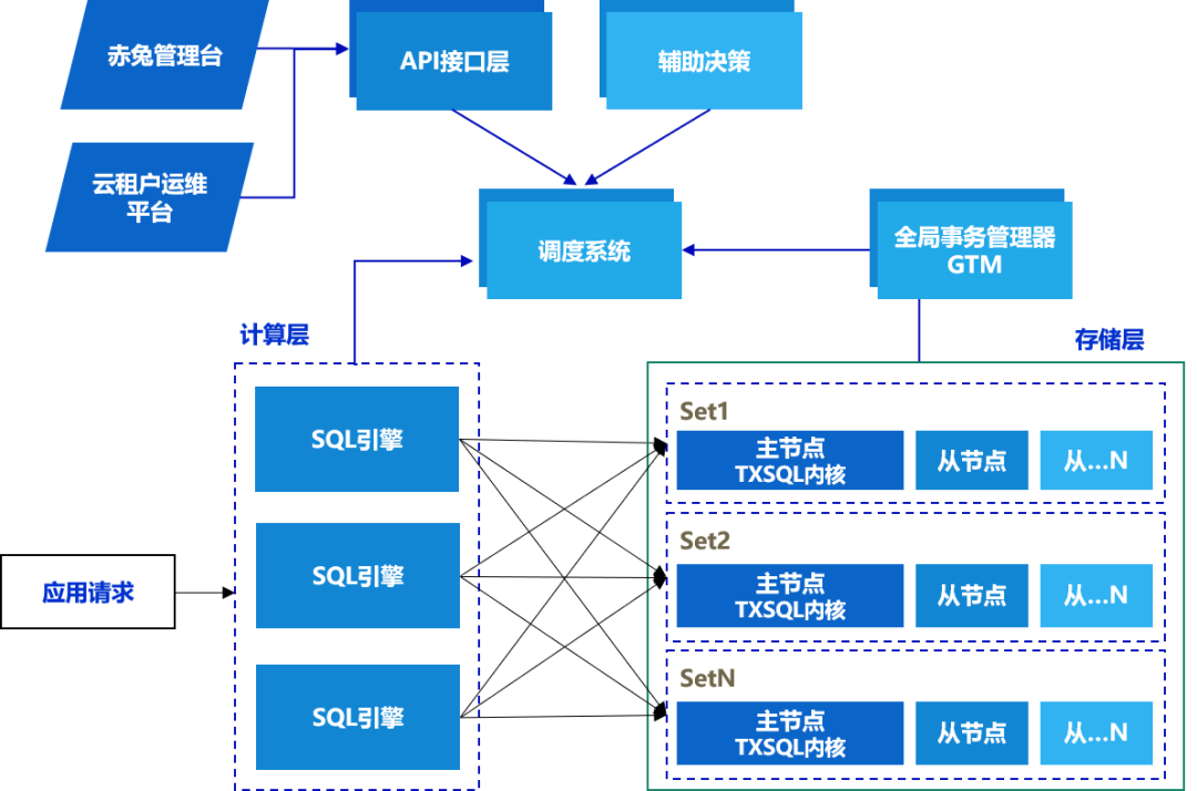数据库存储层:由数据库节点组(SET)组成,SET是逻辑概念,由一组物理设备或虚拟化节点构成