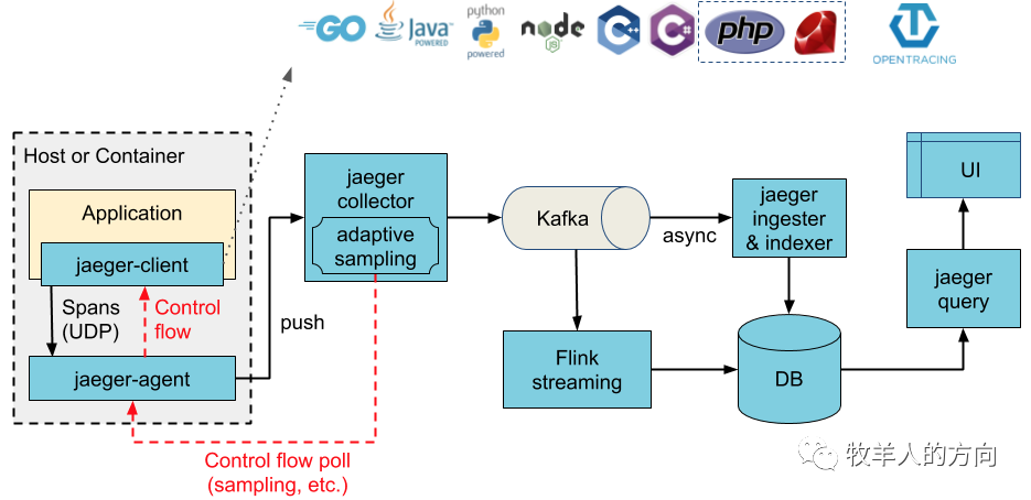 jaeger-client:Client是应用程序的一部分,它负责在每个服务或应用中注入追踪代码。这个代码收集有关请求的元数据,例如开始时间、结束时间、服务名称等,并将其发送到Jaeger Agent。Client库有不同的版本,针对不同的编程语言,如Java、Python、Go等。