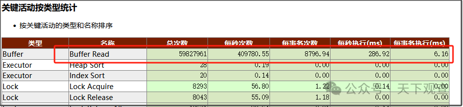 3,关键活动按类型统计,问题已经给出答案,就是buffer read占用了主要时间。
