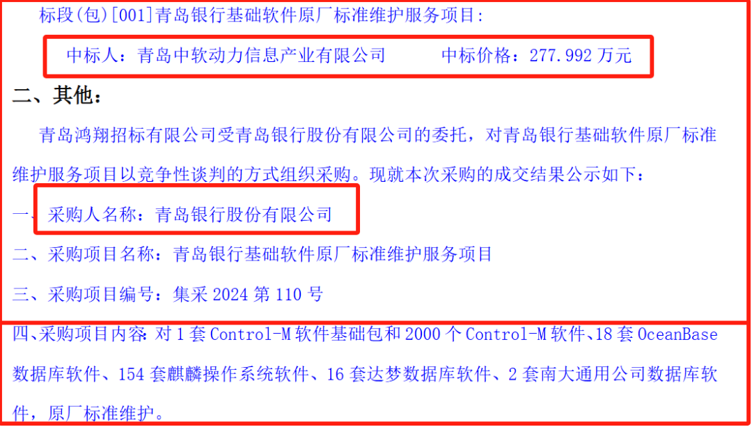 中标人:青岛中软动力信息产业有限公司,277.992万元