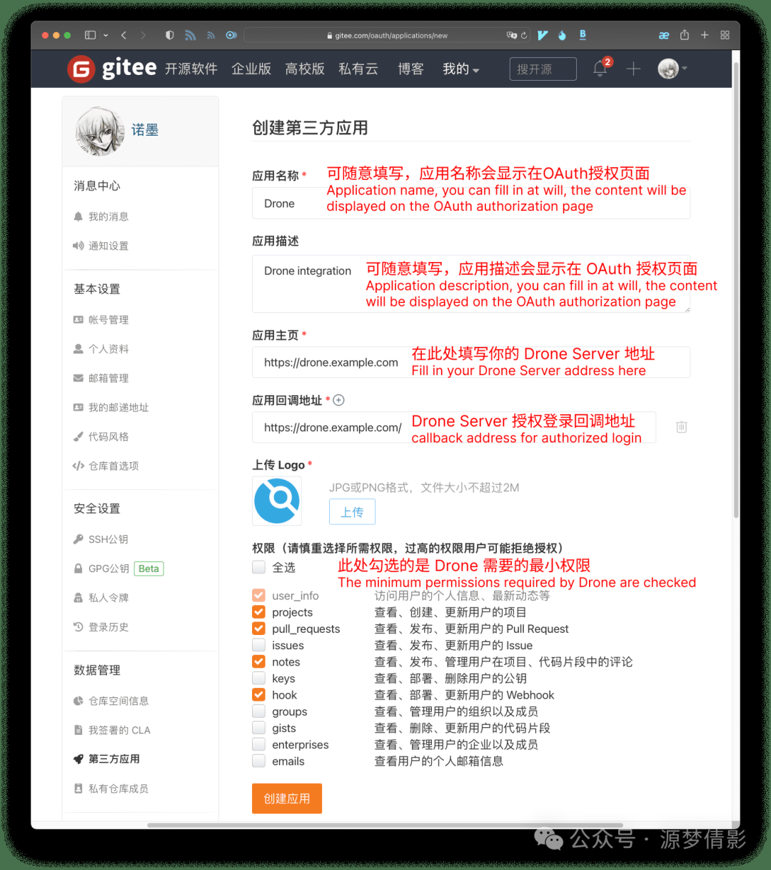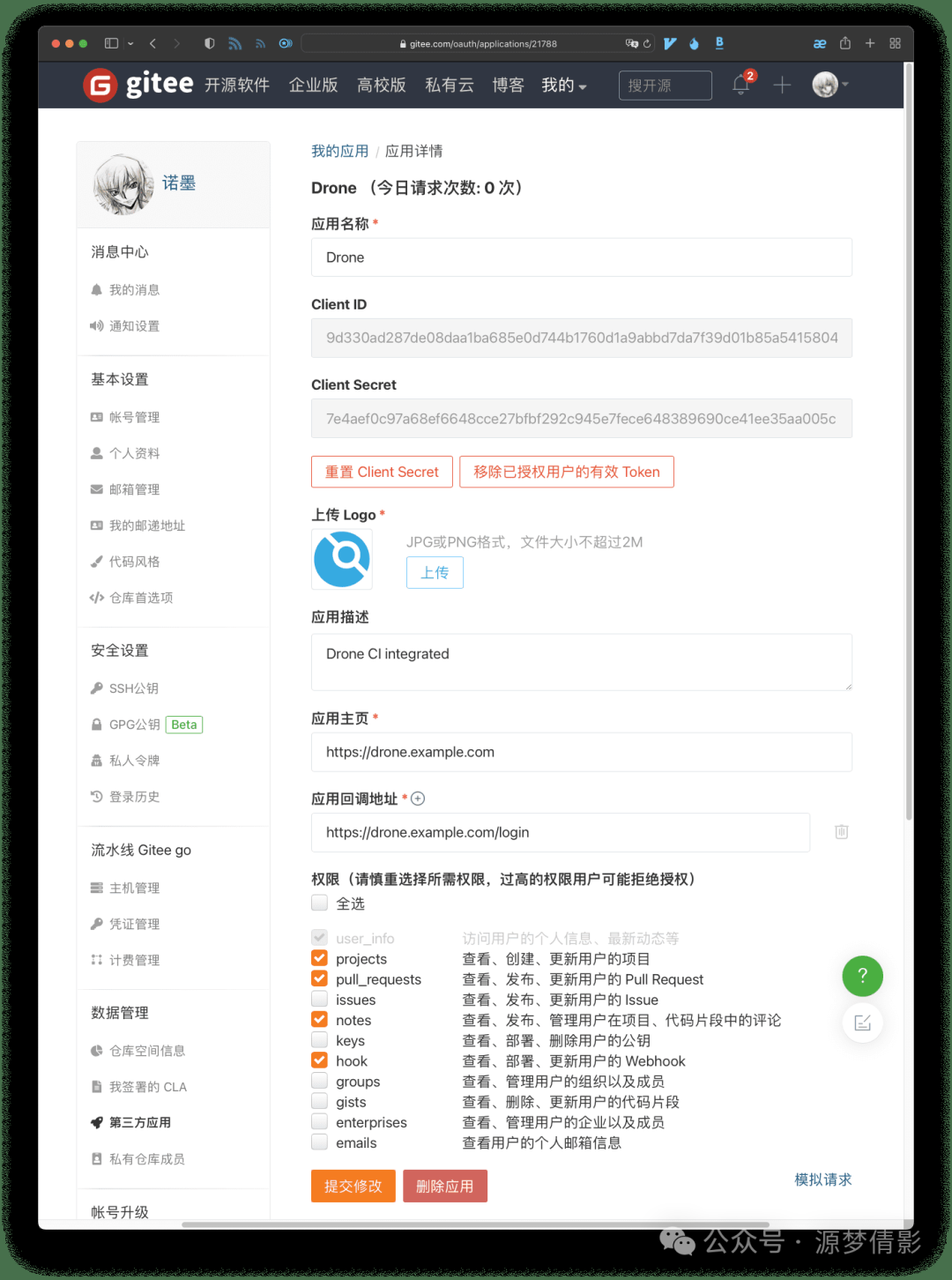 docker run \--volume=/var/lib/drone:/data \--env=DRONE_GITEE_CLIENT_ID=f7018cdd7c2a2515eb0cc3eeea039a3aeda0991a520c9e6f7eca37b97761de20 \--env=DRONE_GITEE_CLIENT_SECRET=a29f1465460f620d1238b6ebf207ae6778a6bfd074b3c7befe72d5f9647ed02c \--env=DRONE_RPC_SECRET=super-duper-secret \--env=DRONE_SERVER_HOST=drone.domain.com \--env=DRONE_SERVER_PROTO=https \--publish=80:80 \--publish=443:443 \--restart=always \--detach=true \--name=drone \drone/drone:2