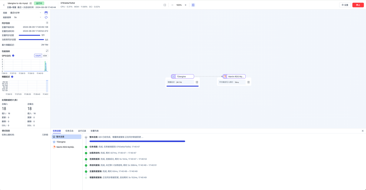 以上,便是借助 TapData 快速实现 TDengine 到 RDS MySQL 的全、增量同步的模拟教程。