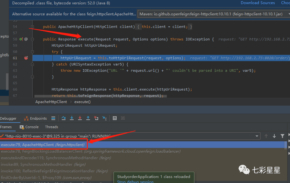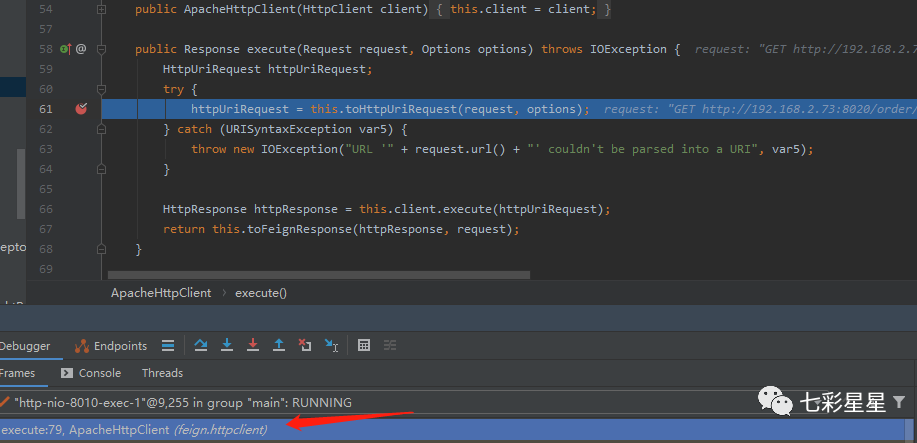 测试,验证 会进入ApacheHttpClient 中的execute 方法