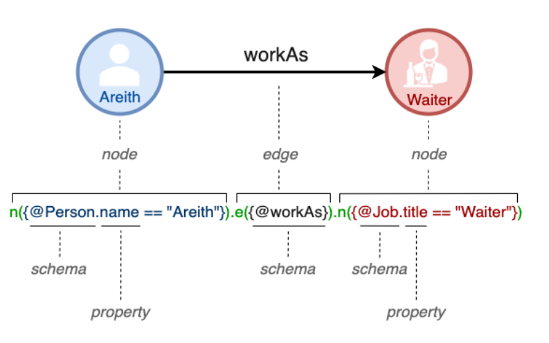 图4中代码里出现的Person、Job和workAs是Schema(模式)。Schema表示点、边的不同类型。属性(Property)