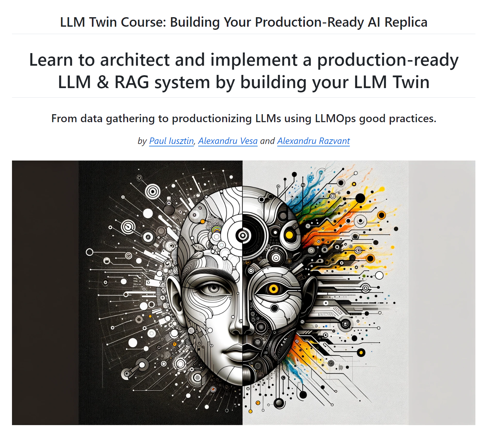 开源的大语言模型孪生课程:构建面向生产应用的AI副本,该课程系统地介绍了使用LLMOps从数据收集到构建部署大语言模型的技术实践,并通过构建大模型孪生和部署大语言模型与检索增强(RAG )系统提供了端到端的框架。