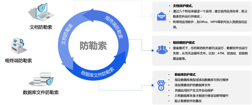实时监控各类进程和用户对数据文件的读写操作,快速识别、阻断已知、未知勒索病毒的写操作以及 “rm -rf ”之类的删除命令行为,确保只有被允许的合法操作才能被执行,有效避免微盟事件中自行停止数据库进程后删除数据库文件等数据破坏场景。