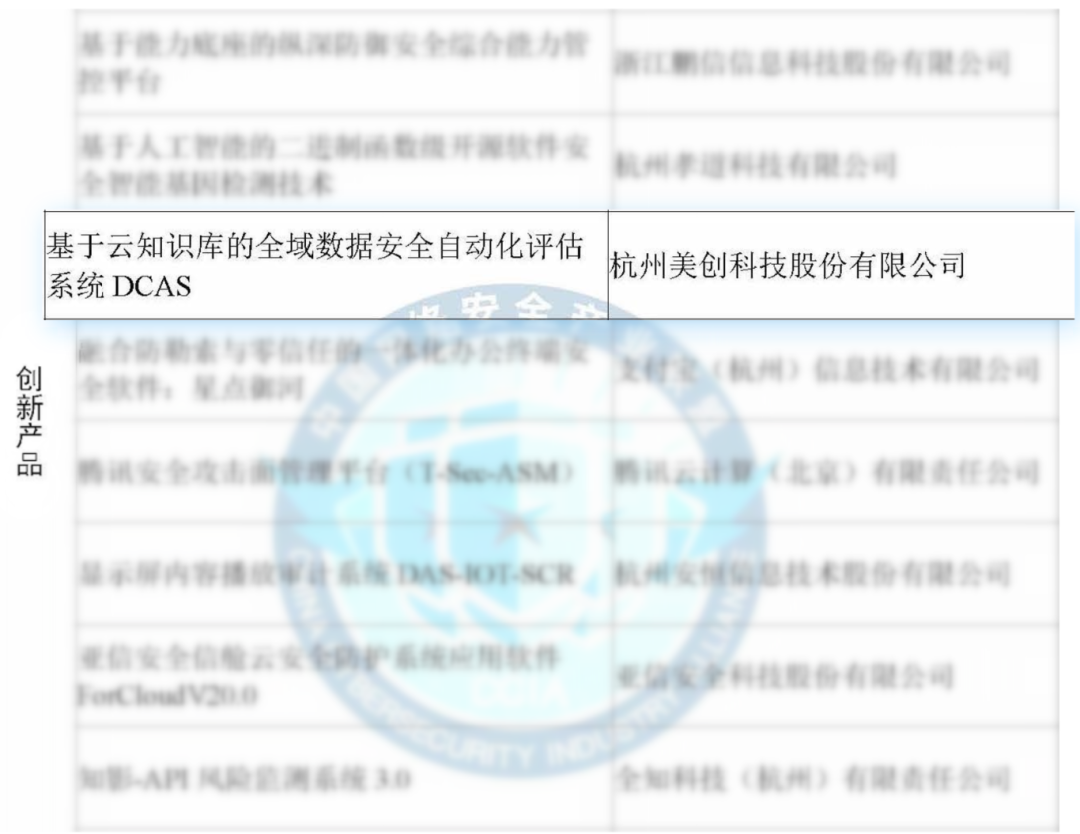 聚焦数据安全、深耕数据安全、创新数据安全,在多届中国网络安全产业联盟组织的“网络安全优秀创新成果大赛”等评选活动中,美创产品方案获得多次认可: