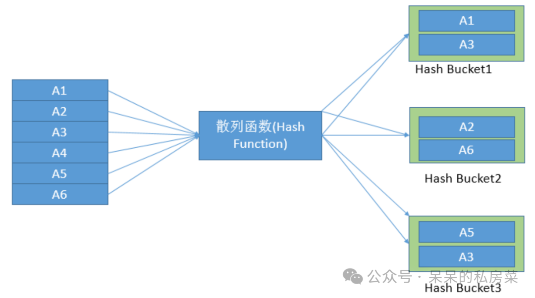 1. 构建阶段:输入源中的每一个条目经过散列函数的计算都放到不同的hash bucket,注意条目是无序的;2. 探测阶段:对于另一个输入集合,同样针对每一行进行散列函数,确定其所在的hash bucket,再针对这行和对应hash bucket中的每一行进行匹配。3. 如果匹配成功则返回对应的行。
