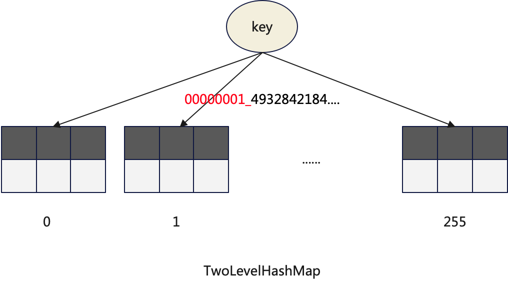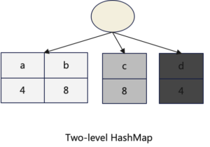 相对于常规HashMap,Two-level HashMap是一个二层数据结构,数据首先映射到一个Bucket,这个Bucket是一个常规HashMap,然后再次将数据进行映射到常规HashMap的Bucket中,更多关于Two-level HashMap请参考下文。