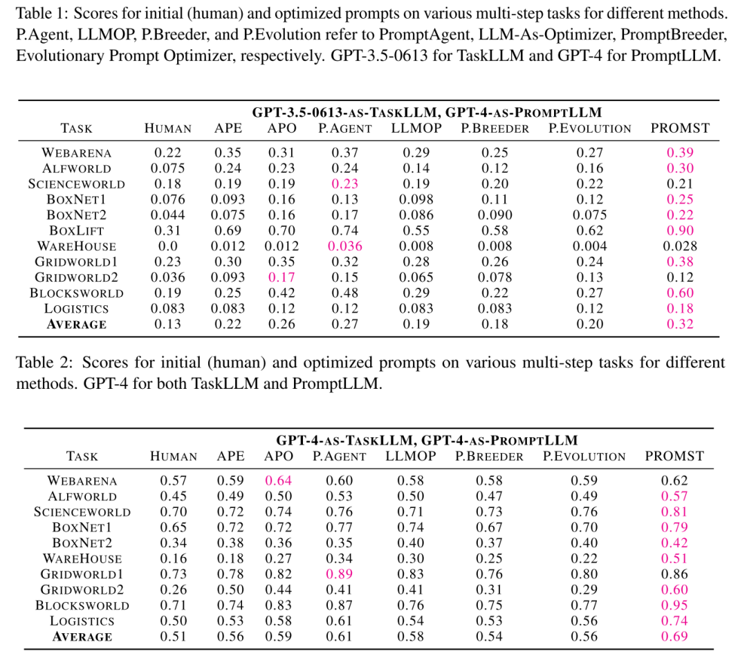 这篇文章提出了一种针对大语言模型的多步骤任务优化prompt的新框架,名为PROMST。该框架旨在解决多步骤任务中提示词优化的挑战,这些挑战包括提示内容的复杂性增加、单个步骤效果评估困难以及不同用户对任务执行偏好的差异。