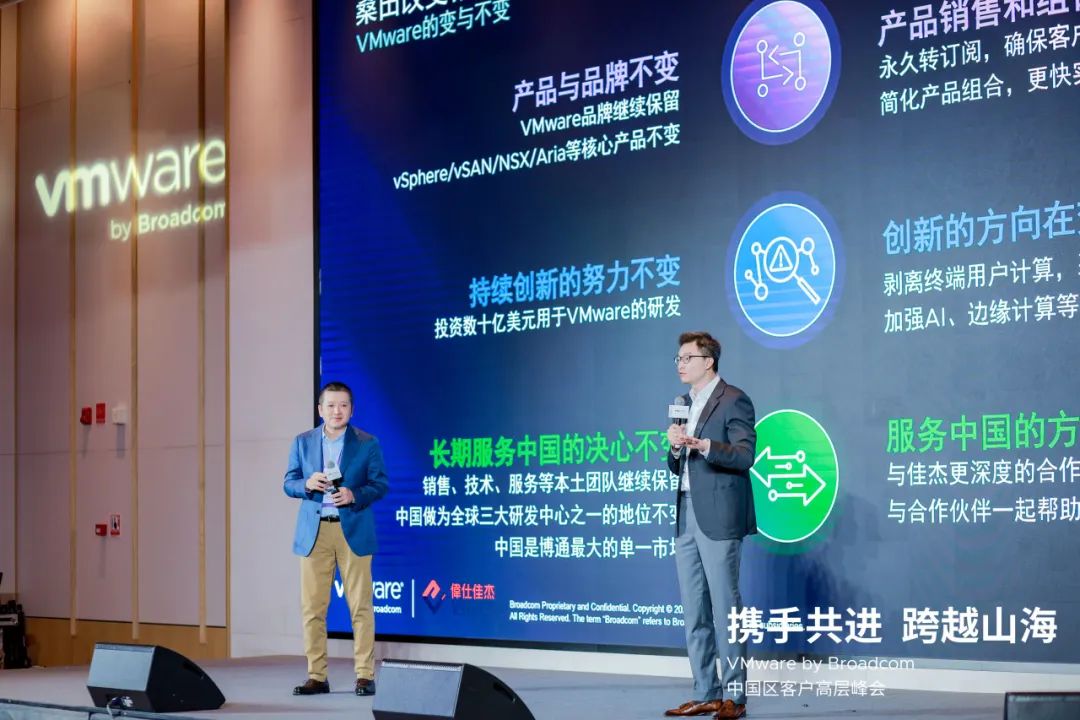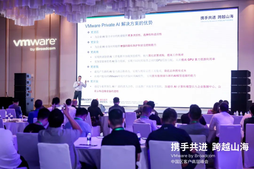 此次峰会,博通VMware团队向大家呈现了深耕中国的决心。大家相信,转型之后的VMware依托其强大的技术实力和不断创新的精神,通过精简产品线、强化优势解决方案、业务全面转型订阅模式、持续重点打造全能企业云平台 VMware Cloud Foundation(VCF)和Private AI云平台等诸多方面的变革,将为中国区客户提供更灵活、高效、经济的云计算解决方案,帮助用户更加高效地管理和利用云计算资源,快速构建和部署私有云环境、提高数据中心运营效率、降低总体拥有成本、简化运维管理,未来必将为中国企业的数字化转型贡献更多力量。