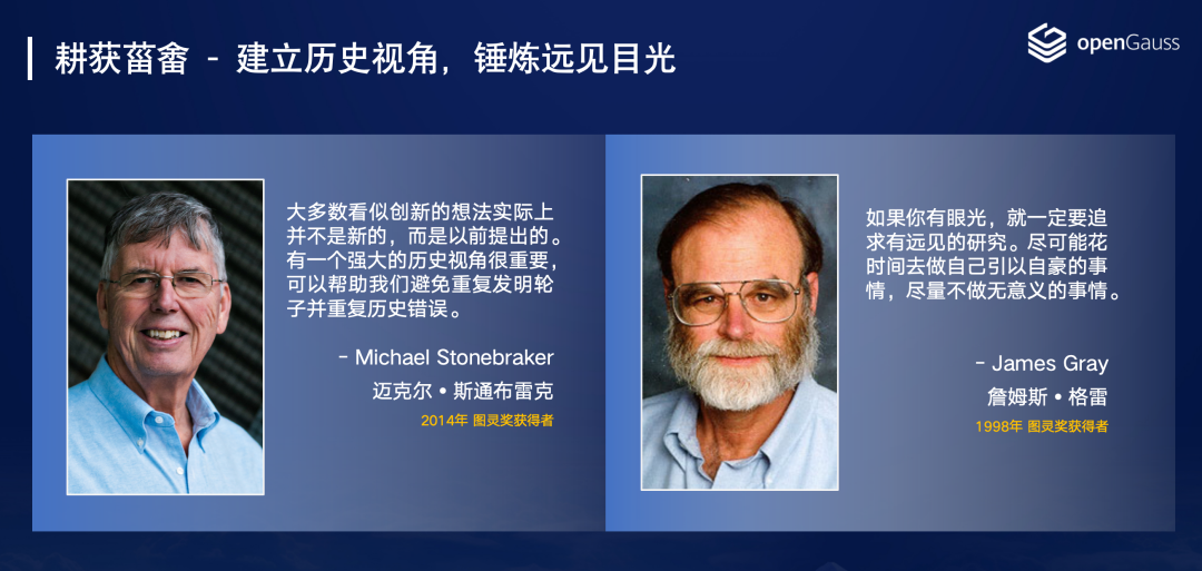 在中国数据库蓬勃发展的时代,我当然认为回顾历史是非常重要的。在2023年的“数据技术嘉年华”大会前,我曾经写了一篇文章,提出了一个问题:当大师遇见大师,他们会谈论什么?两位图灵奖的获得者斯通布雷克(Stonebraker)和吉姆·格雷(Jim Gray)曾经在2002年的一次大会上表达对于行业同仁的观点:两位天才人物不约而同地告诉我们:建立历史视角、锤炼远见目光 非常重要。丘吉尔也曾说过:“回顾历史越久远,展望未来就越深远。”回顾数据库的历史,对我们研究和思考数据库的未来会有很多有益的启示。毫无疑问,中国的数据库产业正在崛起,越来越多的产品和创新正在跻身世界尖端。相信在一代又一代数据人的努力之下,一定会迎来数据库的“中国时刻”。我相信,每一分努力都是推动中国数据库技术进步的力量。点点星光,汇聚星河,此时此刻,中国数据库领域正是群星闪耀时刻。