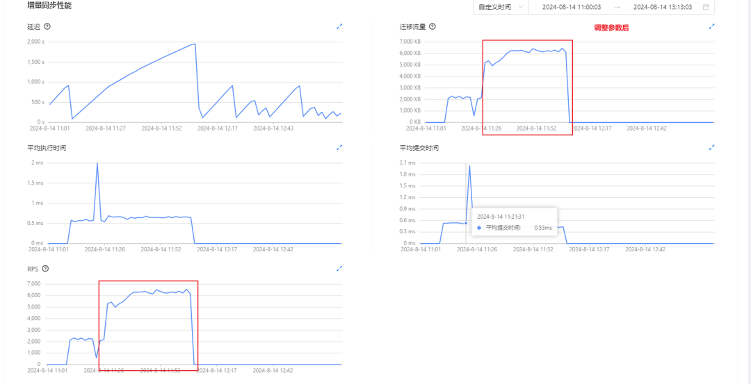后续在 12 点左右,增量数据完成同步并且延迟回落。