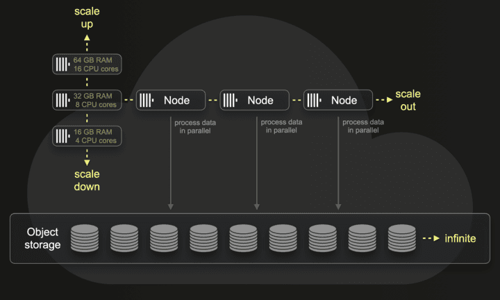 该服务的实例托管在 ClickHouse Cloud 中,这带来了多个好处,尤其是存储与计算的分离。由于数据仅以单一副本存储在对象存储中,我们可以根据用户需求独立扩展 CPU 和内存。如果用户需求增加,我们只需添加更多节点,无需重新分片或重新分配数据。使用对象存储不仅简化了操作,还使我们能够实现有效的无限扩展,从而以更具成本效益的方式提供这项服务。