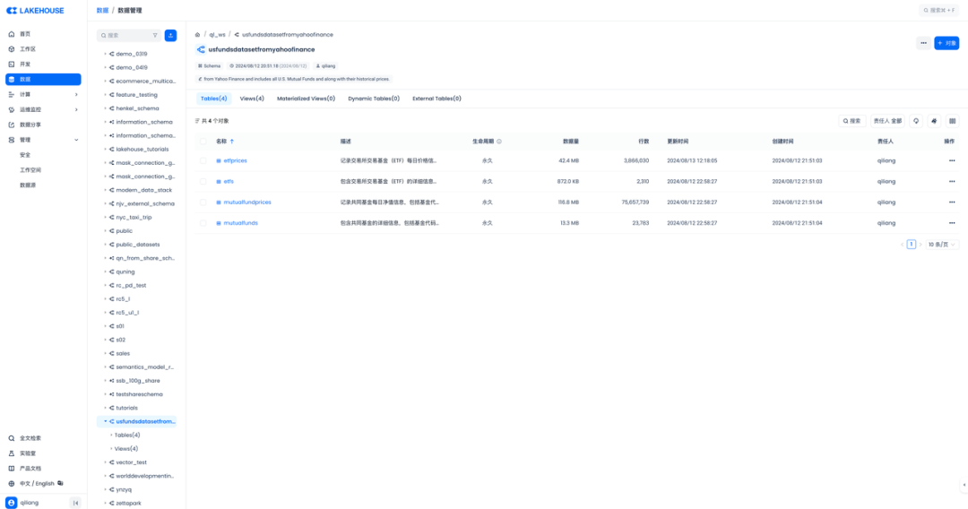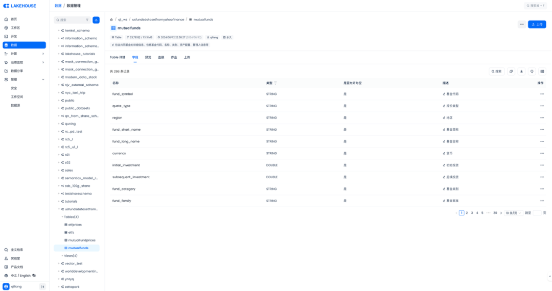 本文讨论了在云器 Lakehouse 上处理 Kaggle 数据集中的 US Funds dataset from Yahoo Finance 的过程,包括生成表结构的 DDL 语句、建模存放数据、添加中文注释、加载数据、检查数据以及使用 DataGPT 进行探索分析等任务。