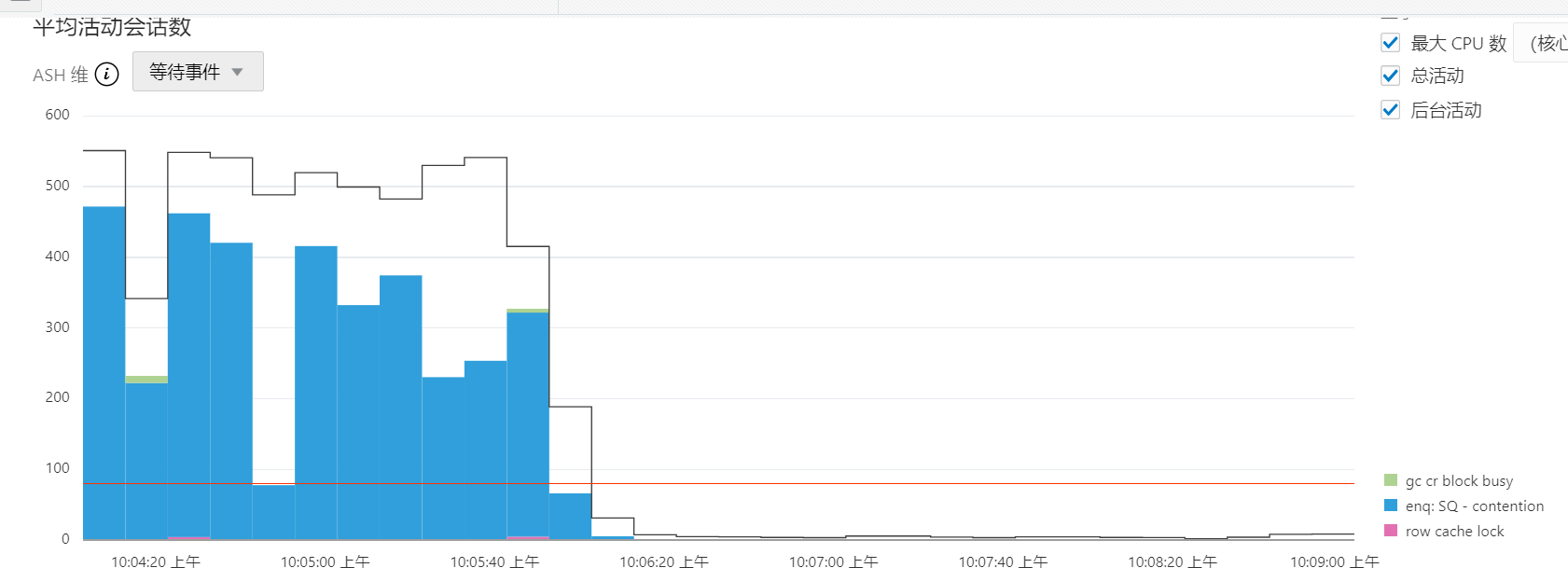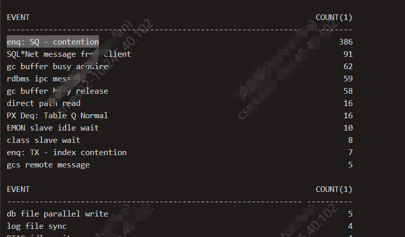 登陆到主机查看等待事件,发现有超多的“enq: SQ - contention”