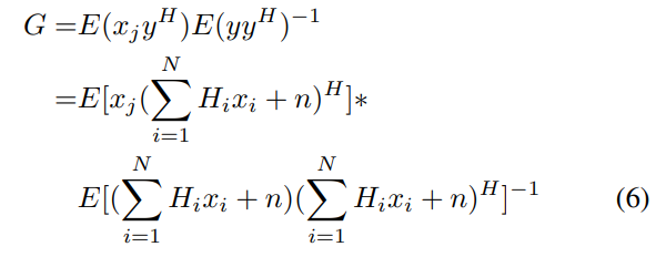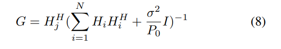 假设每个UE具有相同的发射功率P0,噪声功率可以表示为σ2,即e(xixHi)=P0,e(nnH)=σ2,G的表达式为