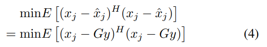 信道信息H可以使用发射机和接收机侧都熟知的DMRS序列来估计。第j个UE的目标估计值可以表示为xˆj,其中1≤j≤N。设x \710;j=Gy,其中G用于根据MMSE准则最小化估计误差。为了使均方误差最小化,