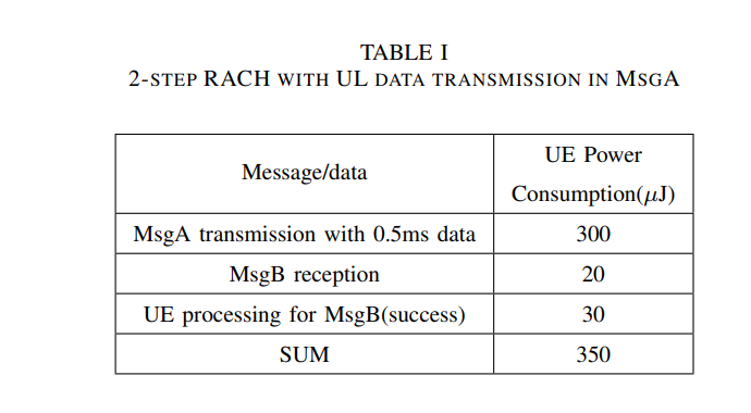 4步RACH的功率假设和具体功耗可参考。2步RACH的具体功耗如表I所示。