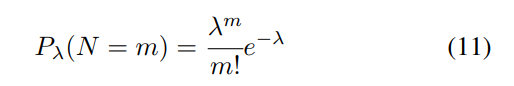 发起2步RACH并发送数据包的UE数量遵循泊松分布,每个MsgA传输机会中的平均数据包数量表示为λ。每个UE号码的出现概率如下: