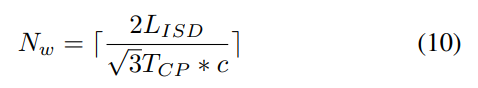 如上所述,由最大定时偏移和CP长度确定的检测窗口Nw的数量可以从站点间距离(ISD)LISD和CP占用时间TCP中得出,