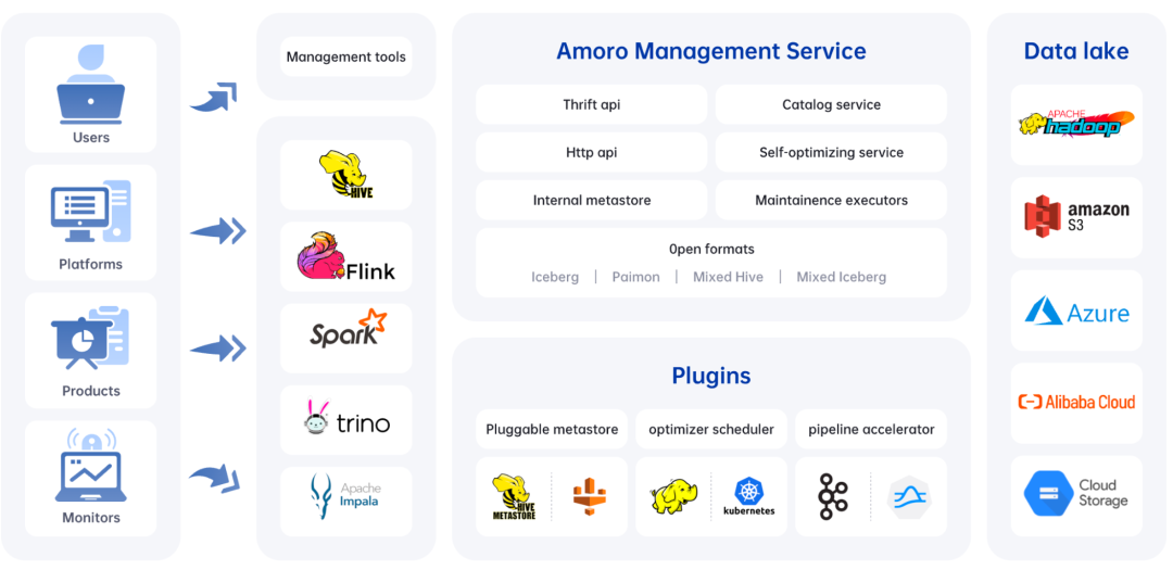Amoro 是一个构建在 Apache Iceberg 等开放数据湖表格之上的湖仓管理系统,提供了一套可插拔的数据自优化机制和管理服务,旨在为用户带来开箱即用的湖仓使用体验。