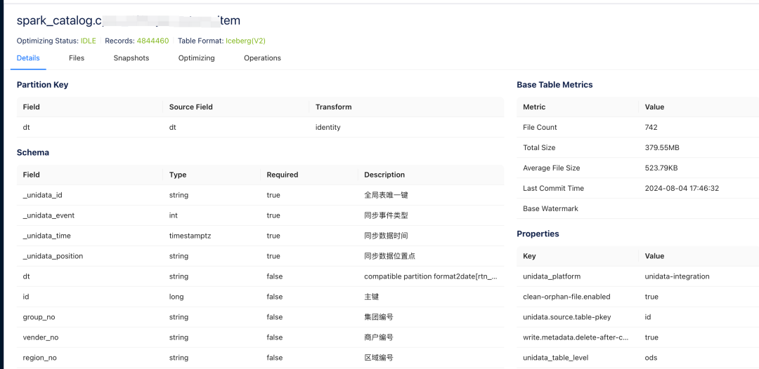 Amoro 提供了丰富且详细的查询视图,能够直观地查看表的状态,比如文件数量、平均文件大小、分区文件夹大小、优化器运行情况等。我们在日常运维中重度依赖这个功能,通过信息的分析观察,为日常表治理提供了优化灵感。