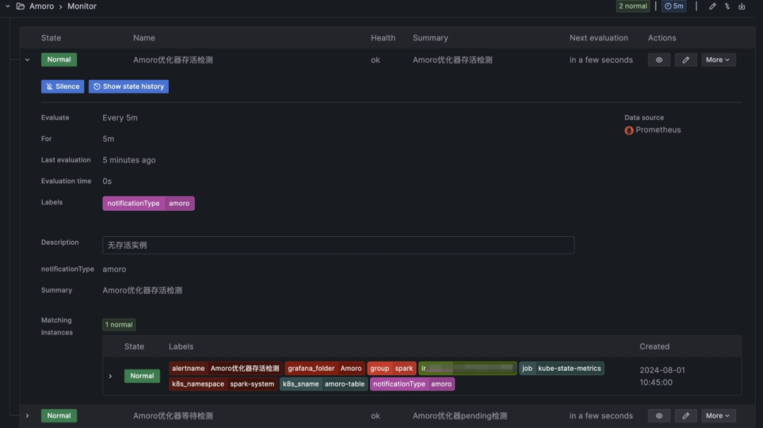 Amoro 可以通过 Helm 一键部署在 Kubernetes 集群上,其中包括 AMS Server 和 Optimizer 的安装。我们选择 Spark 作为 Optimizer 的实现,充分利用 Spark 的 Dynamic Resource Allocation (DRA) 特性,使优化器具有一定的弹性能力。此外,我们也会在部署时打开 Metrics 上报给 Prometheus,并结合 Granafa 进行监控报警。