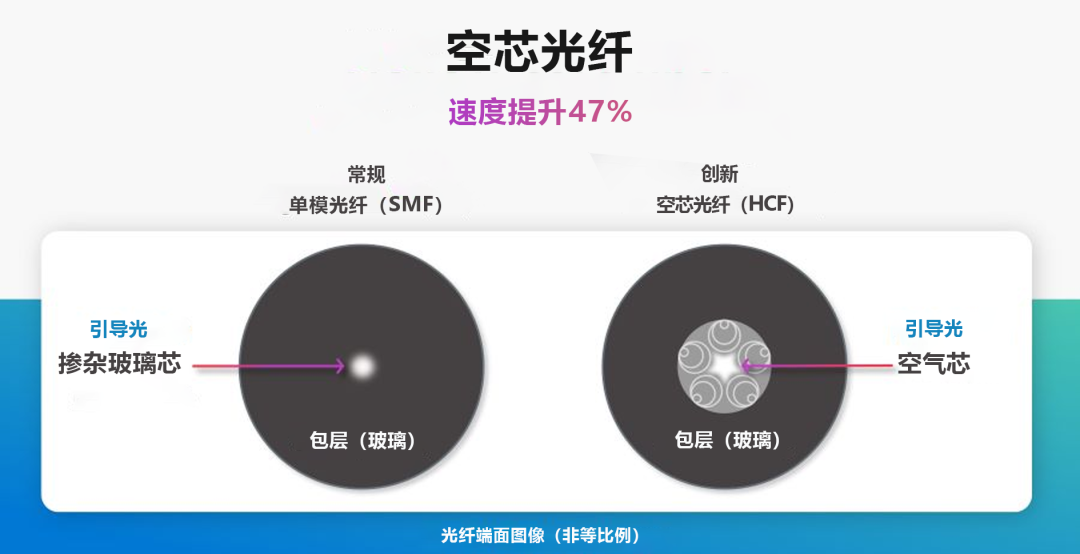 空芯光纤(HCF)技术旨在应对AI等高强度工作负载的严苛需求,并改善全球范围内的延迟和连接性。它摒弃了传统光纤的固态玻璃芯设计,转而采用空气作为光的传播介质。其独特的嵌套管结构,有效遏制了光线的逸散,确保了光线在空气芯中沿着最直接的路径高速穿梭。