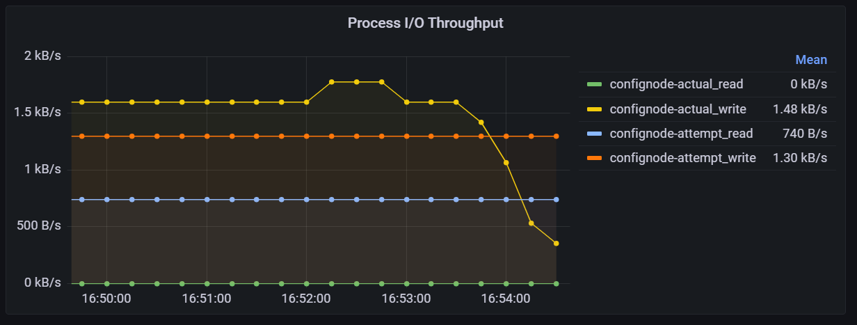 该指标表示进程进行 I/O 的吞吐量,分为 actual_read/write 和 attempt_read/write 两类: